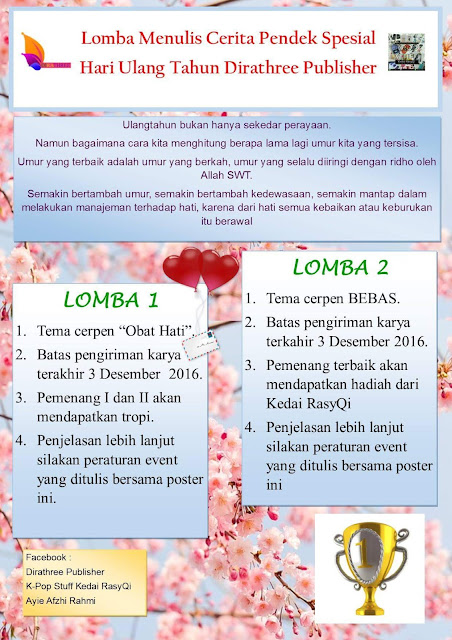 Kali ini Dira 'menggaet' Kedai RasyQi (online shop milik owner Dirathree Publisher) sebagai sponsor perlombaan kali ini.